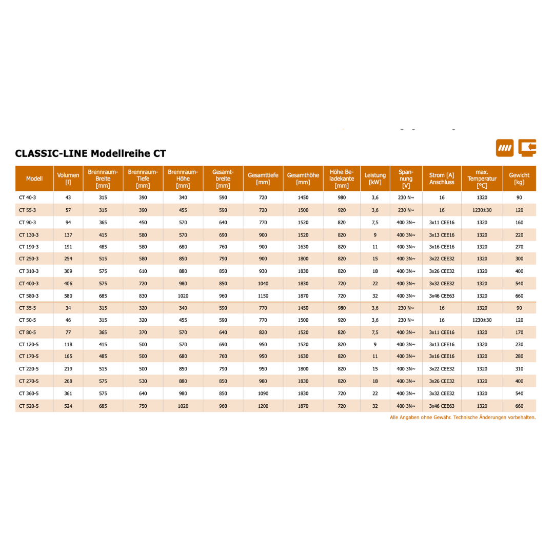 Modell CT 40-3 – 43 Liter Volumen | 3.6 kW | 230 V Modell CT 55-3 – 57 Liter Volumen | 3.6 kW | 230 V Modell CT 90-3 – 94 Liter Volumen | 7.5 kW | 400 V Modell CT 130-3 – 137 Liter Volumen | 9 kW | 400 V Modell CT 190-3 – 191 Liter Volumen | 11 kW | 400 V Modell CT 250-3 – 254 Liter Volumen | 15 kW | 400 V Modell CT 310-3 – 309 Liter Volumen | 18 kW | 400 V Modell CT 400-3 – 406 Liter Volumen | 22 kW | 400 V Modell CT 580-3 – 580 Liter Volumen | 32 kW | 400 V