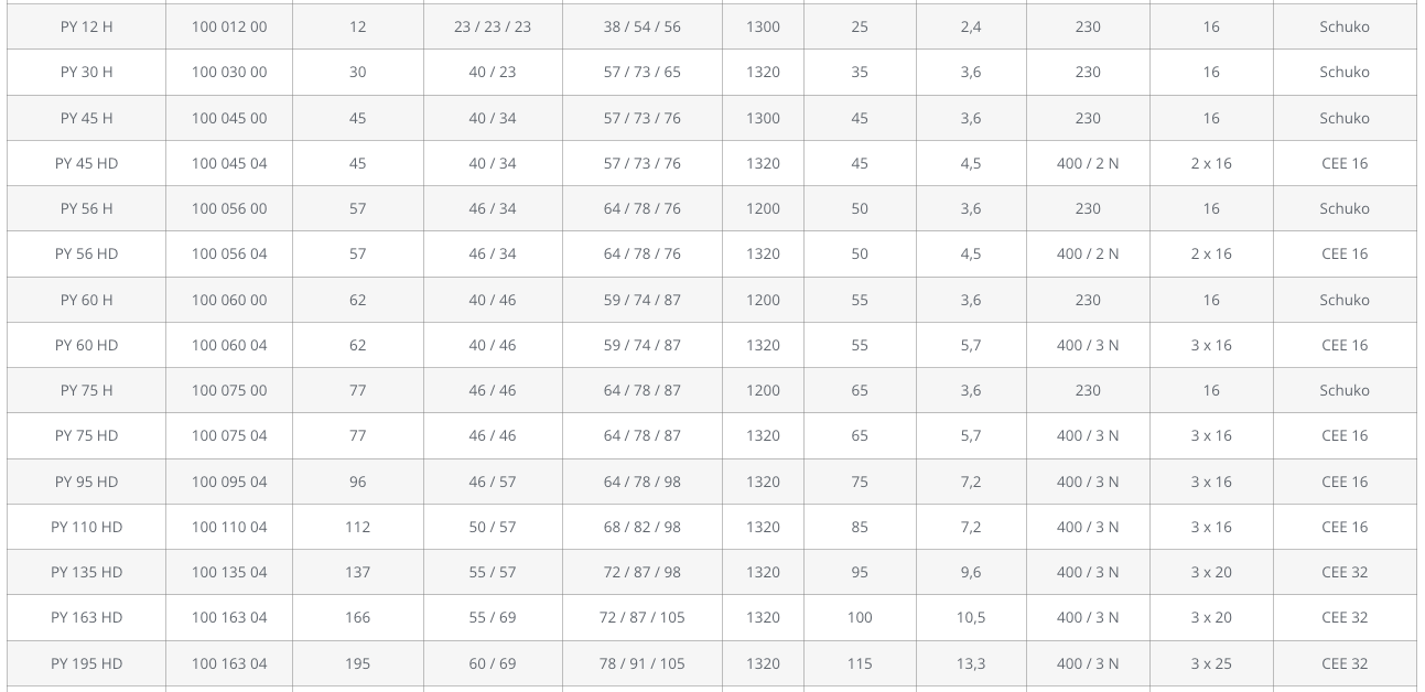Modell PY 135 HD – 135 Liter Volumen