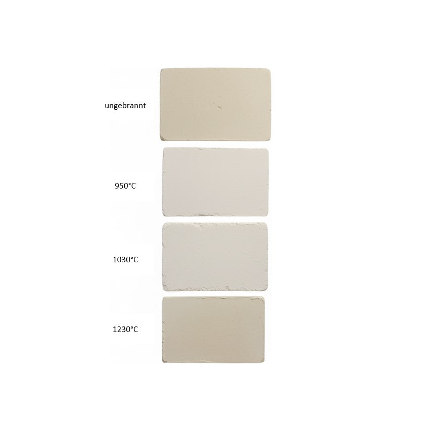 Die Masse hat eine Trockenschwindung von ca. 5,5 % und eine Brennschwindung von rund 4,8 % bei 1 200 °C. Die Wasseraufnahme liegt bei etwa 3 %, und die Sinter­temperatur bei 1 220 °C. Der empfohlene Brenn­bereich reicht von 1 000 °C bis 1 280 °C. Geliefert wird der Ton als handlicher 10‑kg‑Block.