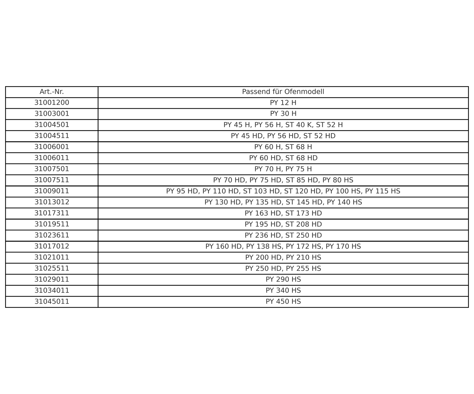 Es sind Heizwendelsätze für nahezu alle PYROTEC-Ofenmodelle erhältlich; von kleinen Laboröfen wie dem PY 12 H bis hin zu Großöfen der Serie PY 450 HS. Die genauen Zuordnungen entnehmen Sie bitte der Übersichtstabelle in den Produktbildern.