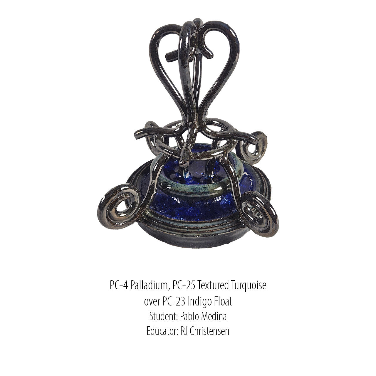 Amaco Potter's Choice glaze PC025 Textured Turquoise creates different, vibrant turquoise and aqua tones depending on the thickness of the application. Applied thinly, it produces a subtle turquoise shimmer, while a thicker application creates an intense, textured aqua effect.