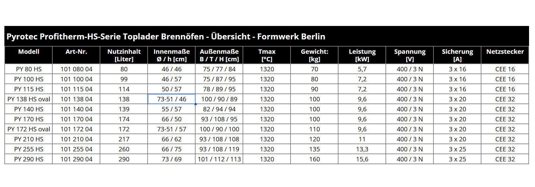 PYROTEC Profitherm HS kiln in 10 variants with PY1 / TC66 control unit